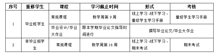 三、 重修学习时间、形式及考核安排:
